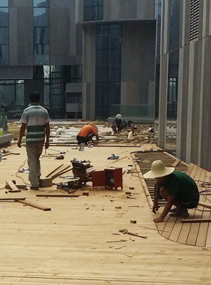 木質(zhì)座椅打造一片休憩的空間,布藝的抱枕,溫馨的燈光,給人內(nèi)心充盈的舒適和溫暖感覺!置身其中,放松心情,整個人都沉靜下來!自家若有個大庭院,木平臺的規(guī)劃讓花園更具人文氣息,木地板、木柵欄、木樓梯、木亭廊……起到藝術(shù)的裝飾作用,同時布置一些照明燈具,夜晚的庭院更顯沉穩(wěn)和品味。 防腐木產(chǎn)品誰來施工? 庭院剛施工完成,柳岸木的葡萄架開裂了?  開車去現(xiàn)場看了一下,做好的葡萄架木質(zhì)很松、裂口很大,可以確定開裂的原因:用的不是柳桉而是松木的一種,但是具體是哪一類松木也分辨不出來,裂縫產(chǎn)生主要原因是木頭沒有烘干,含的水分很多,經(jīng)過風(fēng)吹日曬,木頭中的水分蒸發(fā)發(fā)生收縮變形而產(chǎn)生裂縫,把木頭換掉基本是不可能了,唯一的解決辦法就是等裂縫穩(wěn)定以后用膩?zhàn)犹顫M重新做油漆。  事情解決了,正好業(yè)主也在,就問他簡單溝通了下,了解了一下情況,幫他做花園的是找上門來的一個施工隊,柳桉防腐木地板3公分厚280元/平方,葡萄架報價500元/平方,就業(yè)主算了一筆賬,正宗柳桉木現(xiàn)在市場價按5000元一立方計算,不算損耗,一立方可以做33個平方地板,每平方是150元,木工安裝費(fèi)市場行情是60元/平方,油漆30元/平方,加上地板下的木楞50元/平方加起來就是290元/平方,再加上損耗和正常的公司利潤,280元/平方的柳桉防腐木地板怎么能做的出來呢